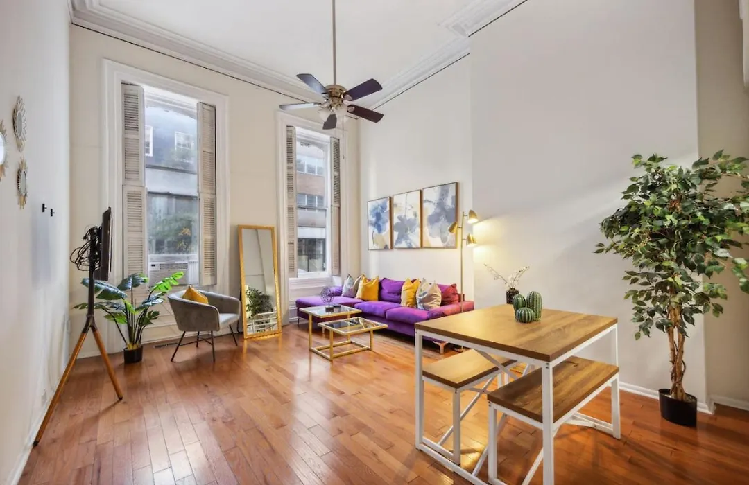 The accommodation offers a fully equipped kitchen, as well as comforts like an air conditioner. At Large And Sunny 1Br Located Near Rittenhouse Square apartment, guests will enjoy the convenience of a dryer in the bathroom. Furthermore, a washing machine is available.